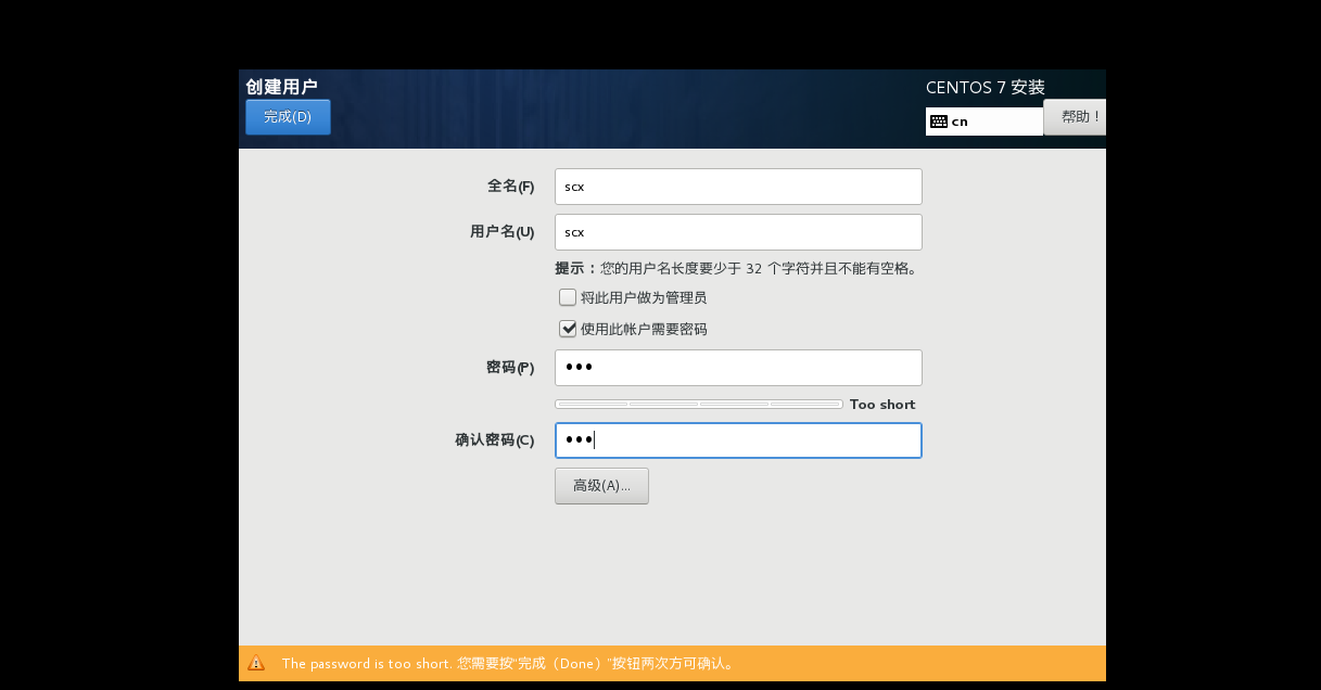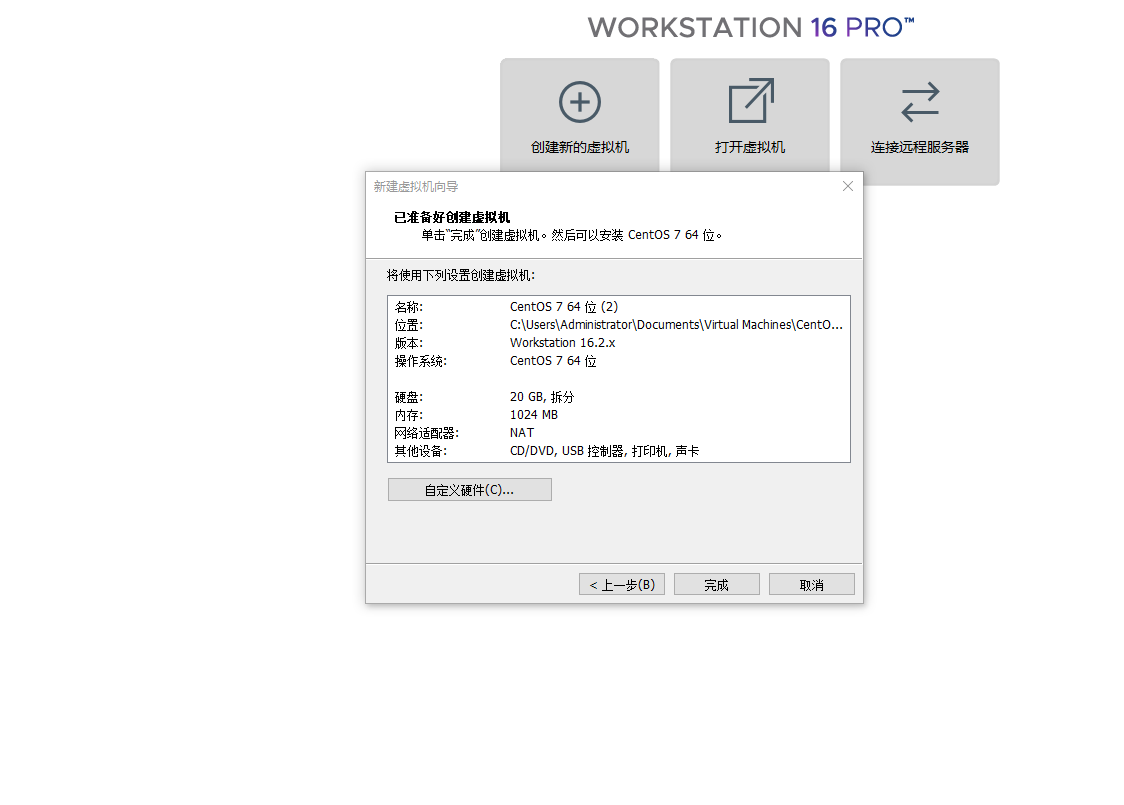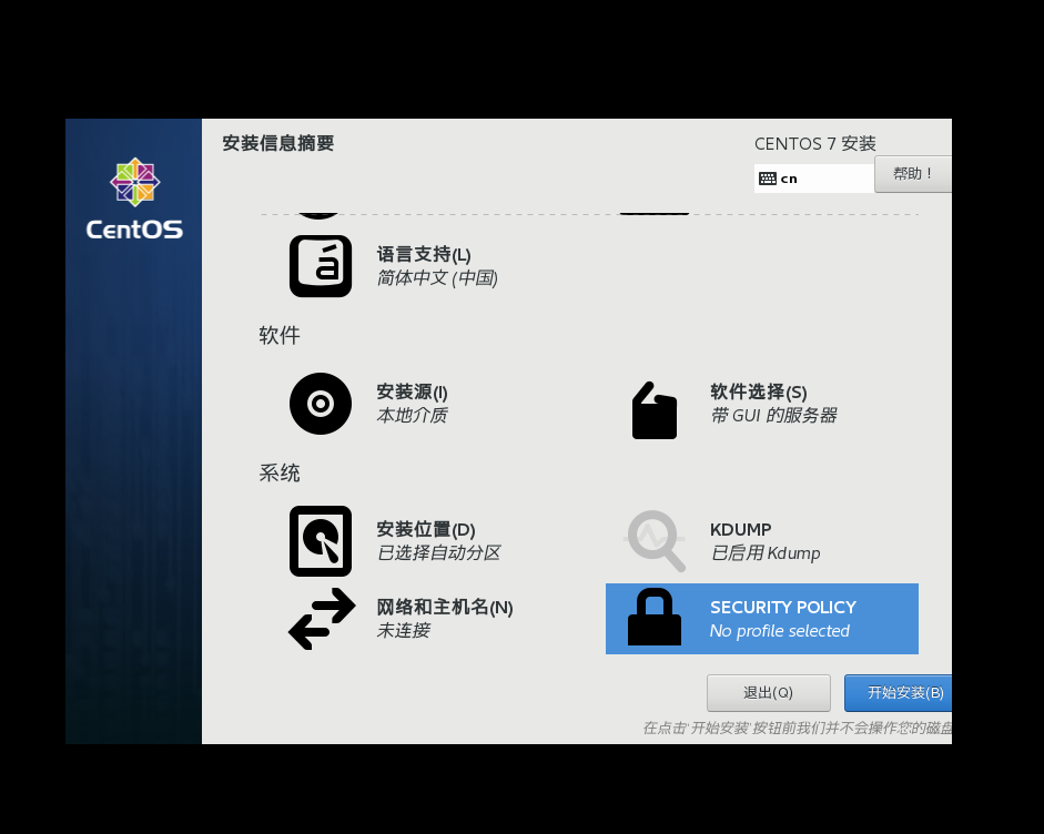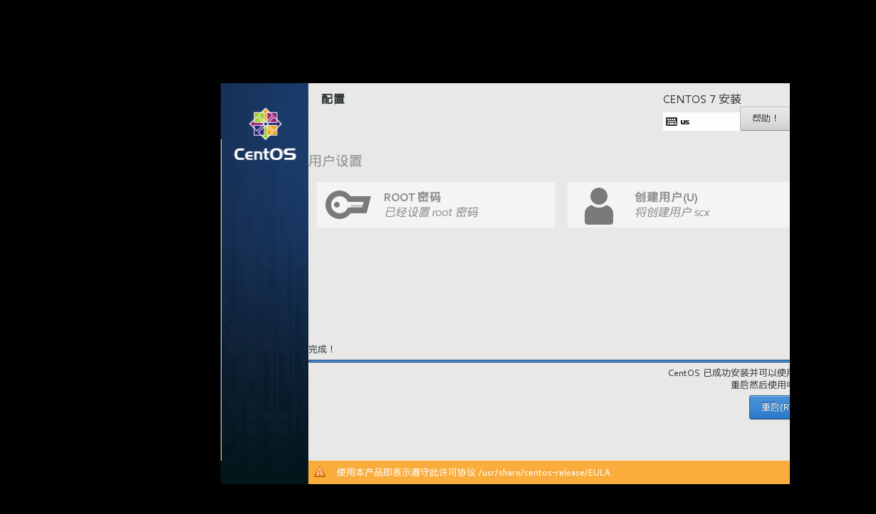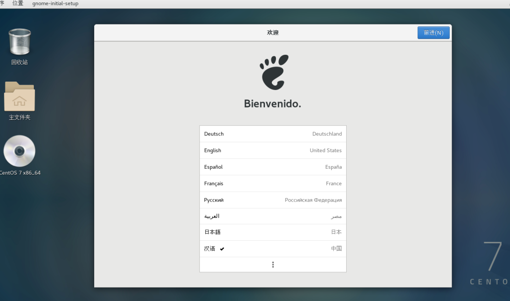 最后一步点击开始使用就可以在虚拟机软件上使用centos7操作系统了。